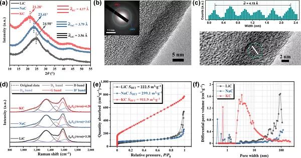 圖2. LiC,NaC和KC的微觀結(jié)構(gòu)表征