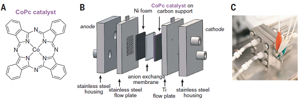 圖8 含有鈷基分子電催化劑的薄膜液流反應器[8]
