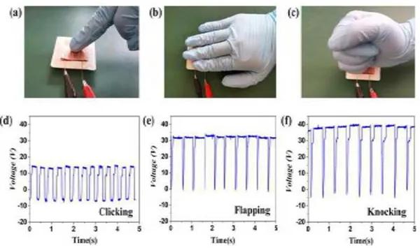 (a,b)MT-TENG的開路電壓和短路電流隨位移幅值的變化而變化;(c,d)MT-TENG的開路電壓和短路電流隨頻率的變化而變化;(e)通過5000個連續工作周期,研究了MT-TENG的穩定性;
