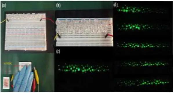 (b)手指按壓時,53個綠色LEDs由MT-TENG供電;綜上所述,受中國傳統榫卯結構的啟發,作者研制了一種新型的榫卯結構摩擦納米發電機(MT-TENG)。與傳統的G-TENG相比,MT-TENG具有更高的硬度。此外,在有限的體積內提高了空間利用率,顯示出優越的能量收集性能。 在相同條件下,電流輸出增強1.7倍。同時,使用廢棄的紙張和PP材料作為支撐材料,體現了環保和輕量化的理念。此外,作者還研究了單個MT-TENG的輸出性能,重點研究了運動幅度和頻率對其能量收集性能的影響,而且MT-TENG還可用于收集人體運動產生的機械能。具體來講,設計出了一種基于MT-TENG的設備,可以監測人體手腳的運動狀態。最后,由此設計MT-TENG產生的電點亮了53個LEDs。這種環保、重量輕、堅固、便攜的電子設備可以實現可持續的自驅動電源,從而在可穿戴電子設備等領域具有良好的潛力。文獻鏈接:“A High-output Performance Mortise and Tenon Structure Triboelectric Nanogenerator for Human Motion Sensing”(Nano Energy,2021,10.1016/j.nanoen.2021.105933)