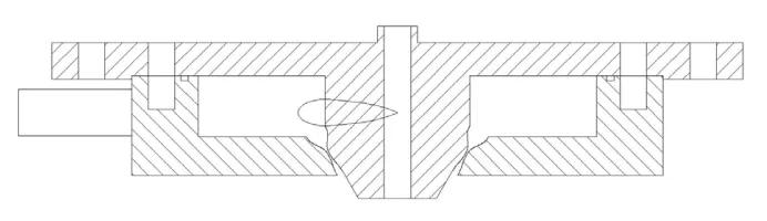 本文設計了一種結構簡單的霧化噴嘴, 噴嘴輪廓采用典型的拉瓦爾曲線, 可以在氣體壓力較低的情況下獲得超音速氣流。通過計算模擬 ,調節至最佳的結構參數, 采用有機玻璃作為主體材料, 考慮到經濟性和加工方便, 采用環縫型的拉瓦爾噴嘴, 噴嘴的結構如圖 1 所示。采用水代替金屬熔體, 氮氣作為霧化氣體, 在常溫條件下模擬真實情況下的氣霧化過程。通過 Fluent 軟件的計算模擬, 可以得到最佳結構參數下, 霧化過程中流場、 溫度場等的分布情況,如圖2 所示。通過模擬實驗的方法, 可以驗證模擬結果的合理性。