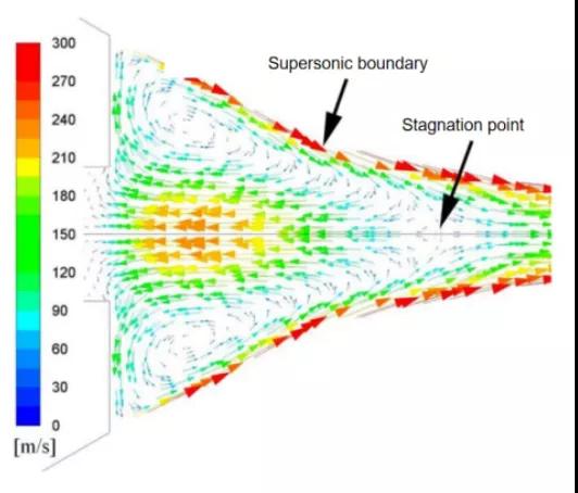 圖 2 Fluent 計算模擬的霧化流場結果(速度場)