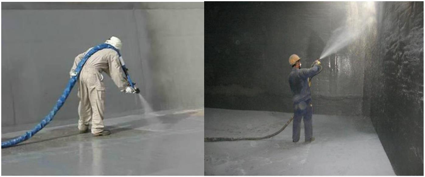 (1) 固化快: 10 秒凝膠,10 分鐘達到步行強度。施工速度快,立面、頂面連續噴涂不流掛。