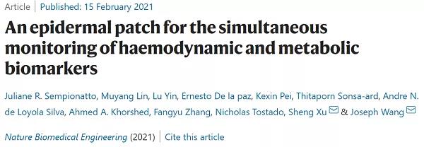 為了監測日常活動對人體生理反應的影響,需要一種能夠同時跟蹤代謝和血流動力學參數的可穿戴器件。基于此,美國加州大學圣地亞哥分校Joseph Wang和Sheng Xu(共同通訊作者)等人報道了一種非侵入性皮膚穿戴器件,通過超聲波傳感器同時監測血壓和心率,并通過電化學傳感器同時監測多種生物標志物。作者優化了集成器件,使其在符合彎曲皮膚表面的同時提供力學彈性和靈活性,并且確保可靠地感知組織間液中的葡萄糖和汗液中的乳酸、咖啡因和酒精,而各個傳感器之間沒有串擾。在人類志愿者身上,該器件捕捉到了食物攝入和運動的生理效應,特別是在食物消化后葡萄糖的產生,通過糖酵解消耗葡萄糖,以及血壓和心率的增加,以補償氧氣的消耗和乳酸的產生。通過集成的可穿戴器件進行連續、同步的聲學和電化學傳感,可以豐富對人體日常活動響應的理解,并且有助于對異常生理變化的早期預測。