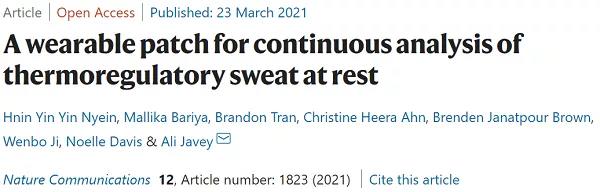 在久坐和日常活動中,人體自然持續地分泌汗液進行體溫調節,其速率可以反映潛在的健康狀況,包括神經損傷、自主神經和代謝紊亂以及慢性應激。然而,低分泌率和蒸發對收集靜止的體溫調節汗液進行無創的身體生理學分析提出了挑戰。基于此,美國加州大學伯克利分校Ali Javey(通訊作者)等人報道了一種可穿戴式的貼片,將其用于在休息時連續監測汗液,使用微流控技術來防止蒸發,并且實現對分泌速率的選擇性監測。作者將用于快速吸汗的親水性填充物集成到傳感通道中,減少了實時測量所需的汗液累積時間。此外,作者還集成了用于pH、Cl-和左旋多巴監測的電化學傳感器。作者還展示了與日常活動、應激事件、低血糖引起的出汗和帕金森病相關的動態出汗分析的貼片功能。通過支持與久坐、常規和日常活動兼容的汗液分析,這些貼片可以在休息時對身體生理進行連續、自主的監測。