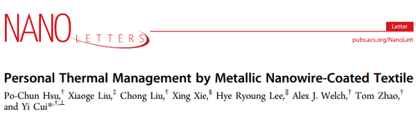 1. 斯坦福大學崔屹Nano Lett.: 金屬納米線涂層紡織物用于個人熱管理
