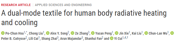 4. 斯坦福大學崔屹 Adv. Mater.: 正穿保暖,反穿降溫-用于人體輻射加熱和冷卻的織物