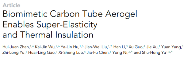 8. 中科大俞書宏院士Chem: 仿生碳管氣凝膠實現超彈性和隔熱