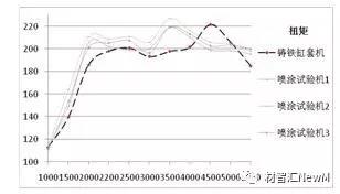 從圖4所示的功率、扭矩曲線可以看出,采用噴涂技術后,發動機功率、扭矩有明顯提升,尤其是中低速扭矩提升幅度非常可觀,最大提升約20 Nm(9%)。