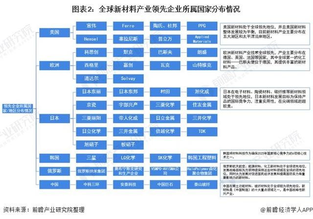 目前,美國、日本和歐洲等地區在經濟實力、核心技術、研發能力、市場占有率等方面占據絕對優勢,擁有成熟的新材料市場,多數產品占據全球市場的壟斷地位,是新材料產業主要的創新主體。陶氏、杜邦、康寧、3M、帝人、東麗、東洋紡、巴斯夫、贏創、索爾維、帝斯曼等跨國巨頭早已形成壟斷。
