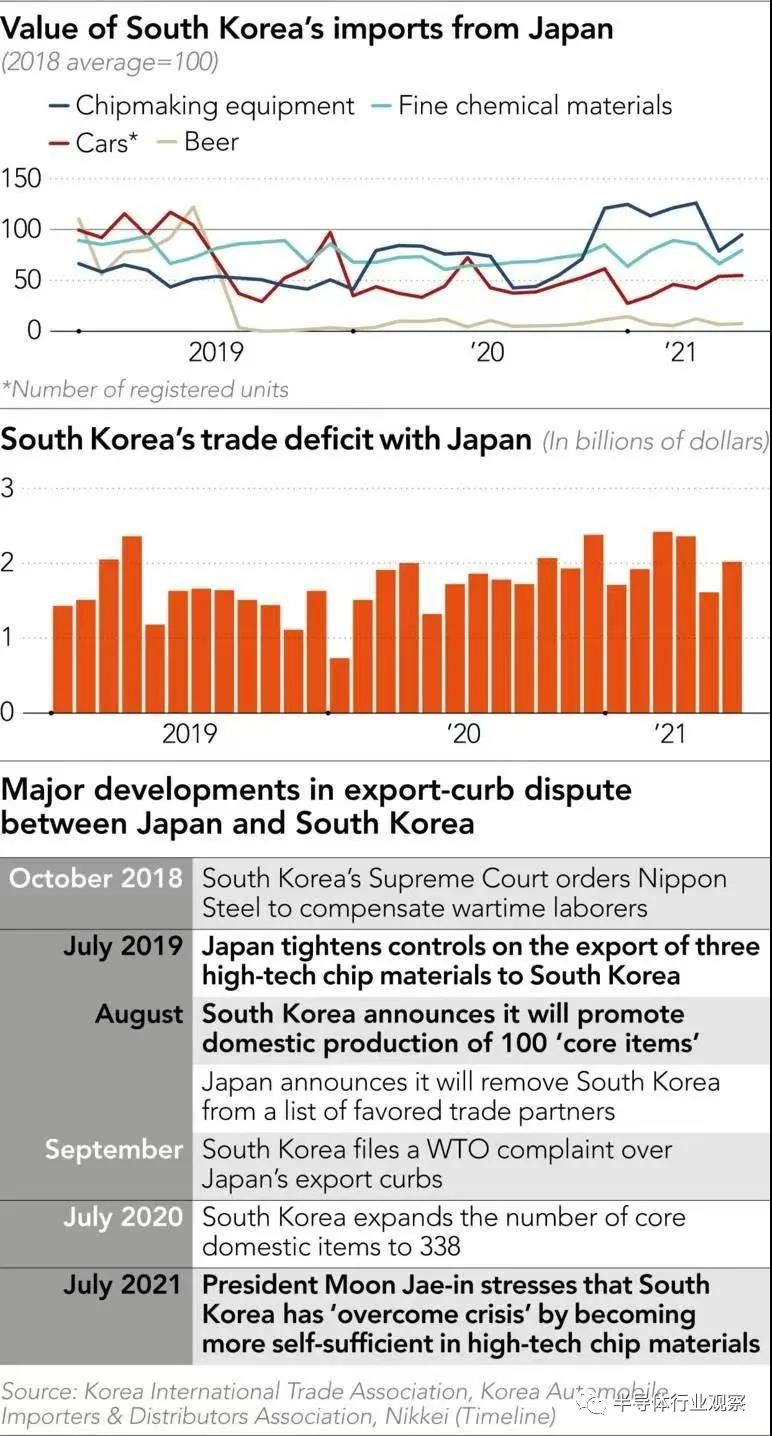 韓國(guó)最大的貿(mào)易逆差是對(duì)日本;它甚至超過了石油出口國(guó)沙特阿拉伯。由于芯片制造設(shè)備進(jìn)口增加,該國(guó)與日本的貿(mào)易逆差在 2020 年擴(kuò)大了 9%,達(dá)到 209 億美元,今年前六個(gè)月擴(kuò)大了 31%。