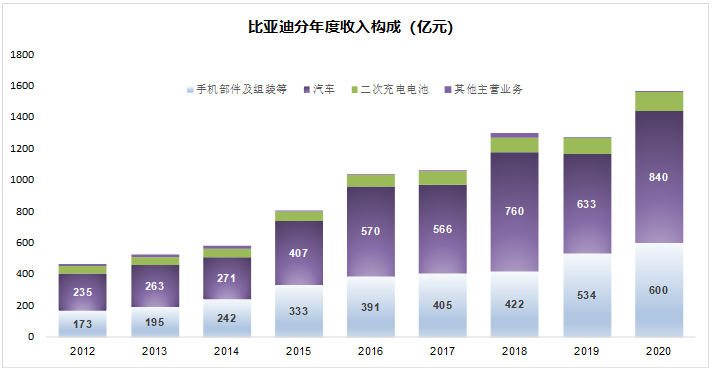 比亞迪的多元化,本質上還是一種降低風險的方式,所謂的“船大不怕浪高”。比亞迪一開始先做手機電池,后又進入手機代工,隨后又去做汽車。在2010年比亞迪汽車銷量見頂后的10年里,比亞迪靠手機代工的現金流支撐著汽車部門,讓比亞迪能夠活到自己的新能源汽車部門見到光明的那一天。