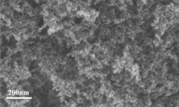 ①Fe2O3-SiO2二元氣凝膠:研究者以正硅酸乙酯、硝酸鐵水溶液、乙醇為原料,按一定比例直接制得醇凝膠,用高溫超臨界有機溶劑干燥法干燥醇凝膠得到Fe2O3-SiO2二元氣凝膠,經TEM分析,該氣凝膠粒子直徑約8nm,粒子分散均勻,基本呈球狀。