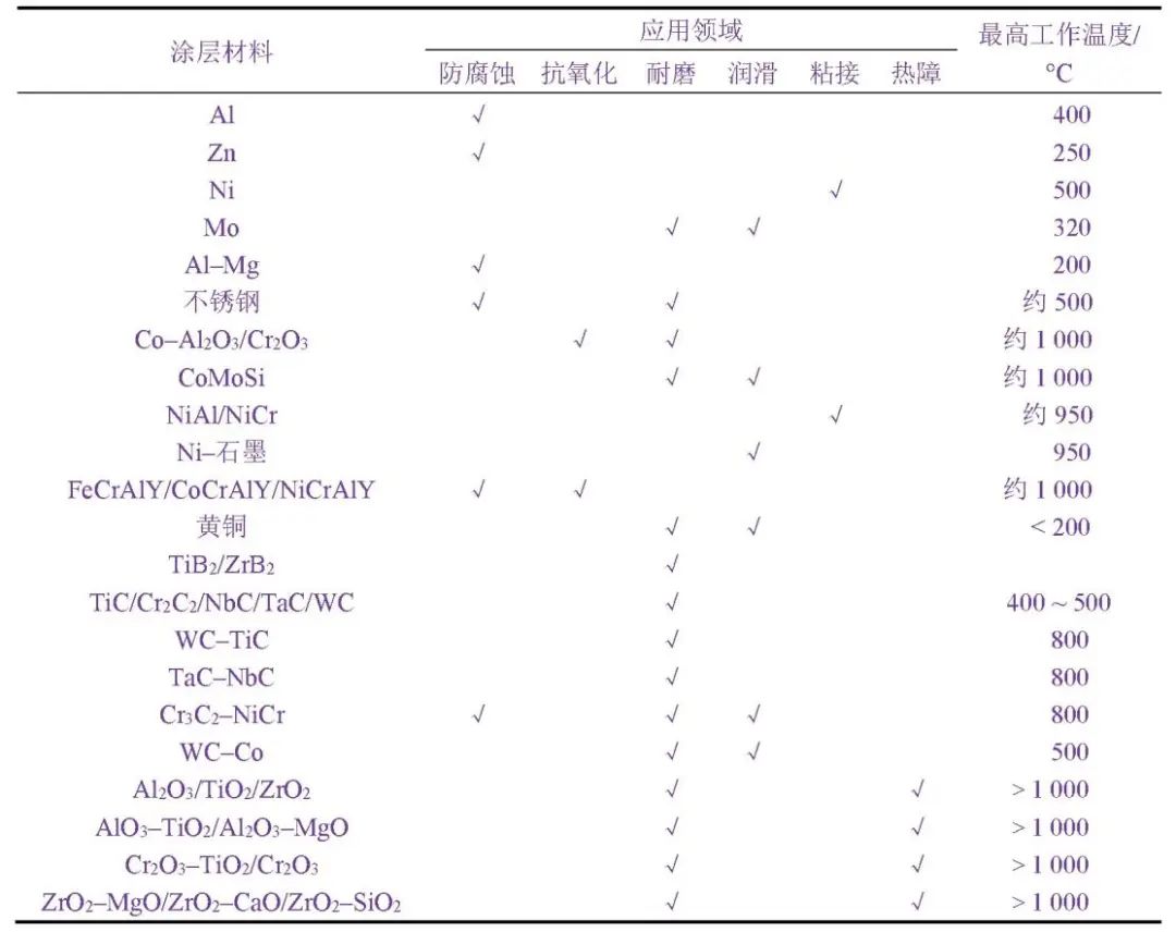 熱噴涂技術的局限性小,對零件基材狀態、預處理沒有過高的要求,而且噴涂原料范圍廣,涵蓋金屬、合金、陶瓷、金屬-陶瓷、高分子材料等。因此,熱噴涂技術在航空航天、石油化工、電子電氣、汽車、醫療、海洋、礦業等領域得到了越來越多的應用。