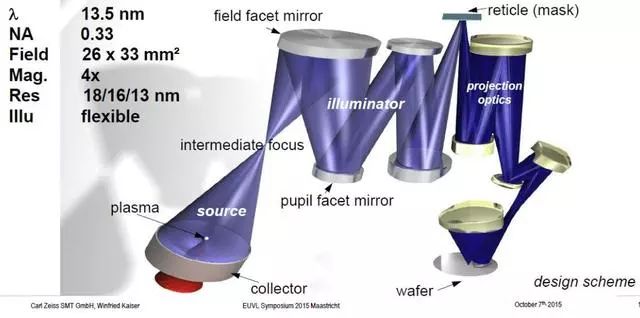 根據(jù)瑞利公式(分辨率=k1·λ/NA),這么短的波長可以提供極高的光刻分辨率。在1985年左右已經(jīng)有半導(dǎo)體行業(yè)科學(xué)家就EUV技術(shù)進(jìn)行了理論上的探討并做了許多相關(guān)的實驗。