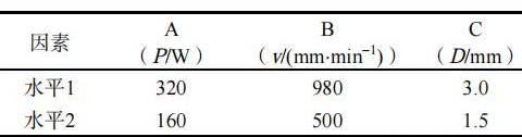 表 1 激光淬火正交試驗的因素水平