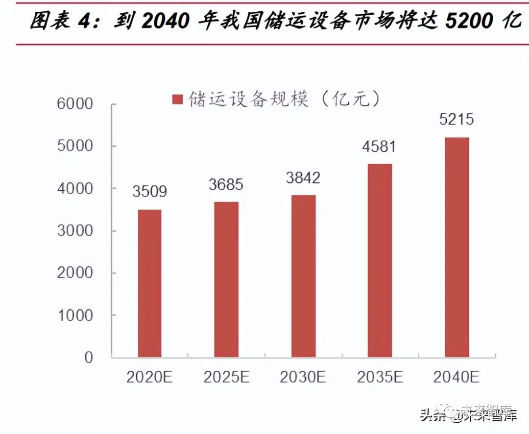 龐大的氫能需求需依靠完善的氫儲運供應鏈,將帶來千億級設備投資規模。在 氫能行業深度報告系列二中,我們詳盡分析了氫能在工業、交通、建筑等領域參與深 度脫碳的潛力,即在 2060 碳中和目標下,據中國氫能聯盟預測,到2040 年,我國 氫氣的年需求量將增至 5700 萬噸左右,龐大的氫能需求量需依靠完善的氫儲運供應 鏈。假設按照終端氫氣售價 30 元/kg,儲運成本占比 30%,設備投資成本占比 70%, 對應儲運設備市場規模將達 5200 億元。